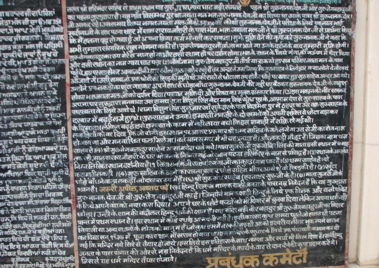 When Guru Tegh Bahadur arranged the reconstruction of the dharmsal, the labourers said the Tham's (wooden pillars) were too short. Guru Tegh Bahadur said they only looked small, when the tham's were lifted they became the correct size.