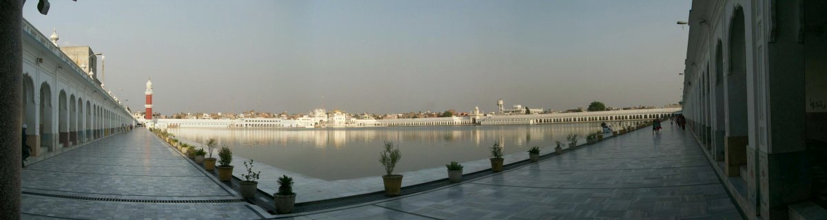A flight of marbled steps behind the Darbar Sahib descending into the sacred pool, marks the spot where, according to tradition, Guru Arjan made the first cut as the digging started in 1590. Sikhs go down these steps to take Charan amrit or palms full of holy water to sip.