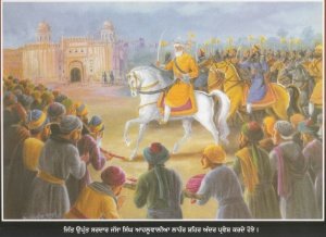 After this, the Sikhs started bringing more areas under their control and realizing revenue from them. In 1758, joined by the Marhattas, they conquered even Lahore and arrested many Afghan soldiers who were responsible for filling the Amrit Sarovar with debris a few months earlier. They were brought to Amritsar and made to clean the Sarovar. After the cleaning of the Sarovar, the soldiers were allowed to go home with a warning that they should not do that again – which was a novel and humane punishment, all things considered.